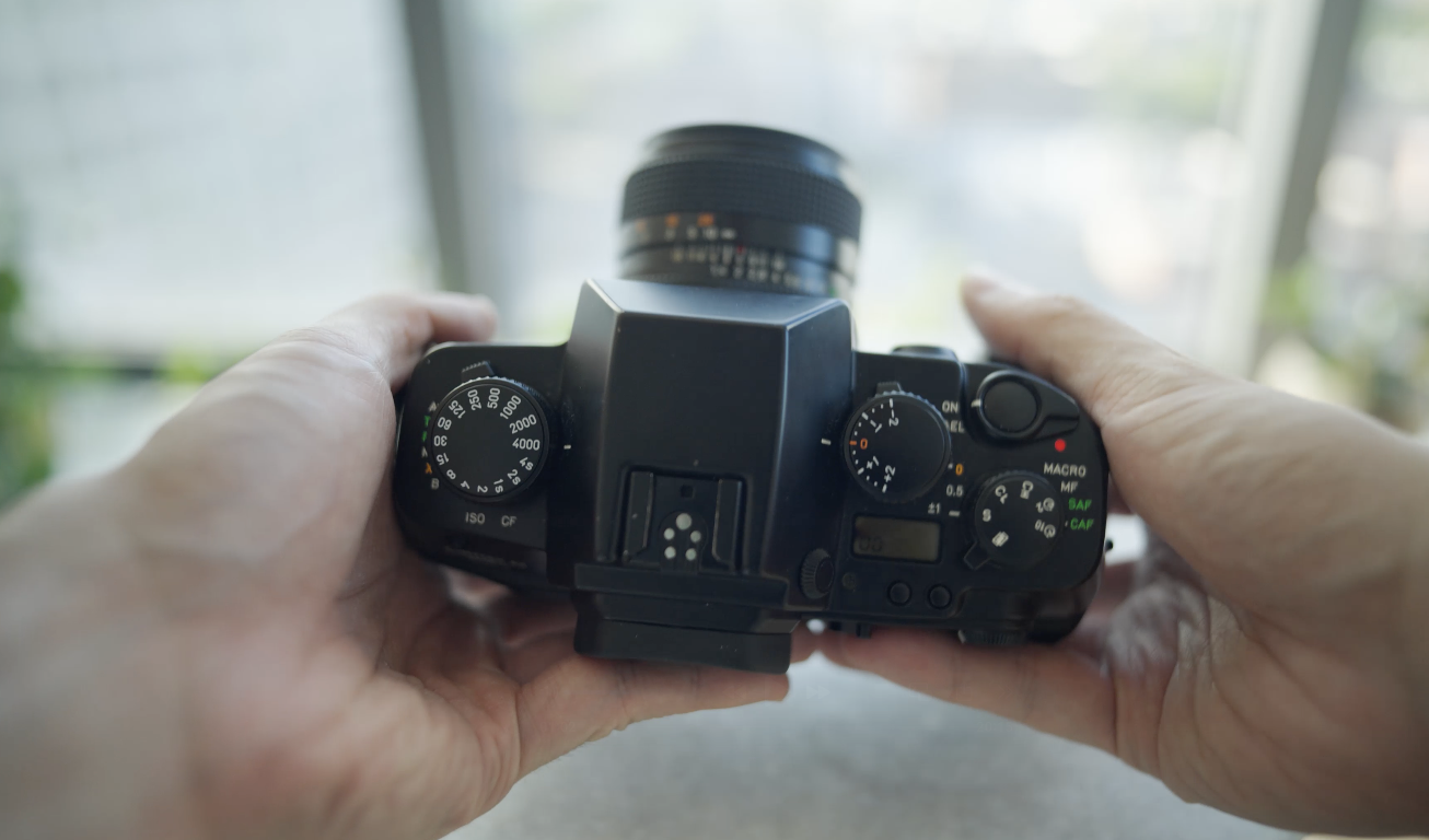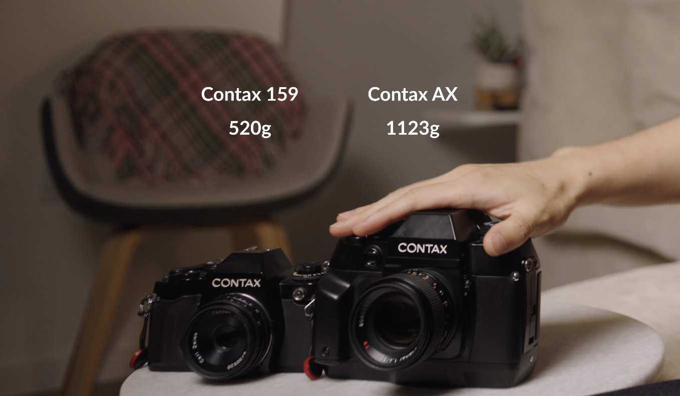 While the initial Contax cameras of the 1980s were minimal and sleek, the cameras in the latter years of the Contax SLR system were becoming larger and larger, with added technology such as an integrated motor drive for automatic film advancing.